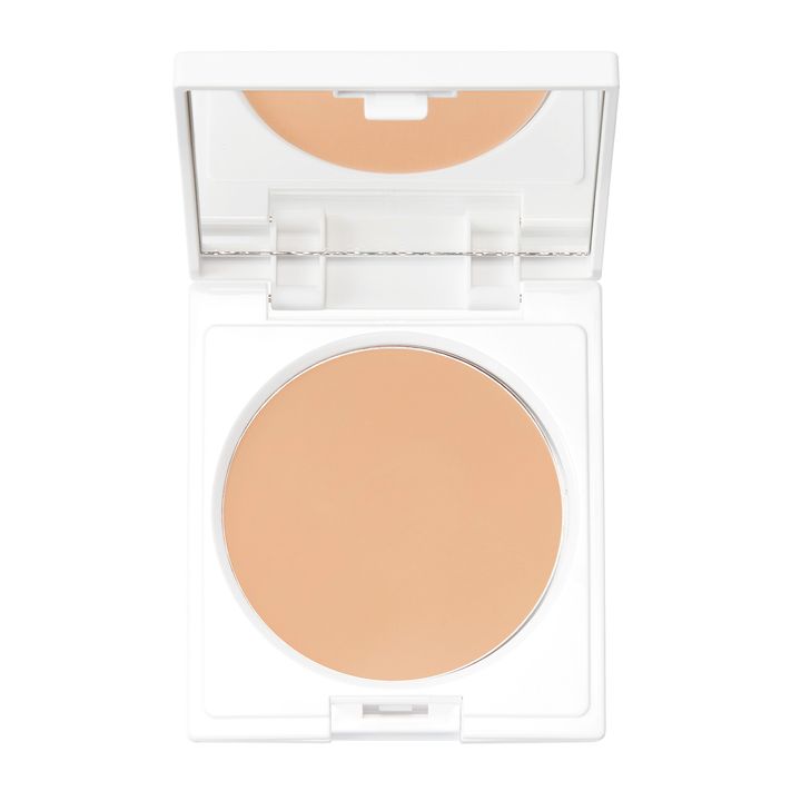 「チークの上にパウダーファンデを重ねてチークを表に出さず、骨格を整える」。石鹸で簡単OFFできるパウダーファンデ。¥3,740(Nuzzle)