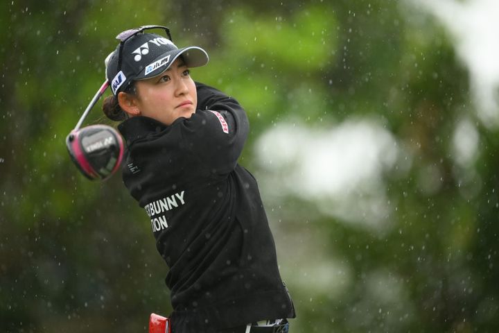 2日目、雨の中プレーする岩井千怜プロ(Getty Images)