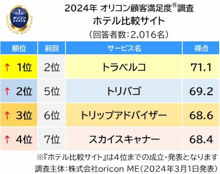 2024年 オリコン顧客満足度®調査 ホテル比較サイト