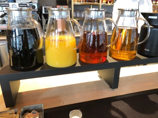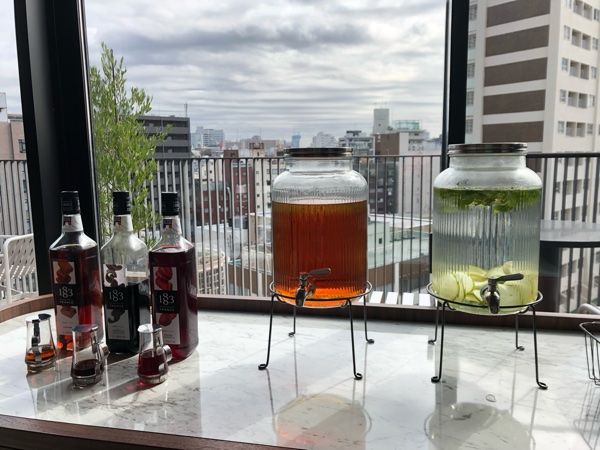 アイスティーとハーブ水(ライムとミント)のサーバーがセルフサービスで頂けます。シロップが三種類用意されていますのでお好みのフレーバーで愉しむことができます。