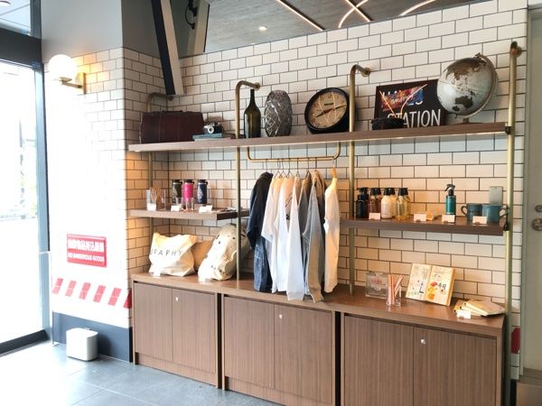 入口ロビー付近にはTシャツ、バッグなどオリジナルグッズが販売されています。