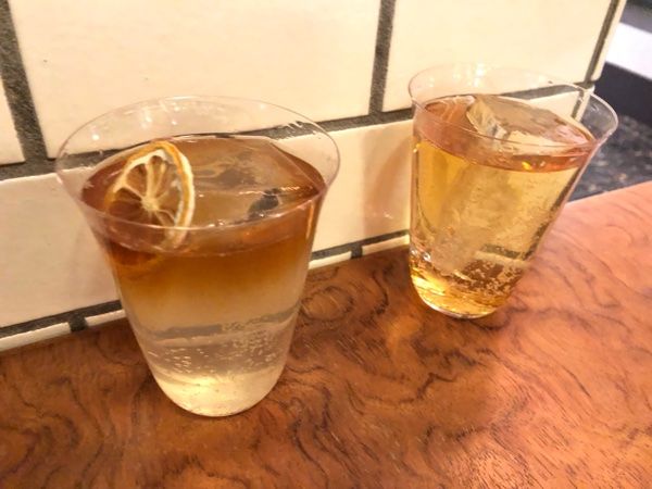 左が柚子珈琲トニック、右が珈琲ハイボール。透明度の高い氷と一緒に頂きます。コーヒーのほろ苦い風味と柚子の甘味との相性が良く美味しく頂きました。コーヒーハイボールは大人の味で斬新なカクテルです。ドリンクメニューは他にも色々ありますのでお店で是非試されてみては如何でしょうか。