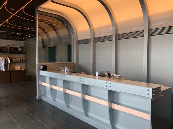「HOTEL GRAPHY(ホテルグラフィー)渋谷」の入口を入るとスタイリッシュなフロントがあります。ウェブで事前チェックインができ、スマホであらかじめダウンロードしているQRコードをフロントのカウンターでかざすだけのスマートなスタイルです。(アプリを取り込むことなくブラウザーからHPへアクセスするだけで完了できます。)
