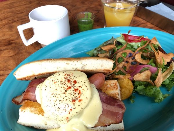 素材がフレッシュなサラダ、自家製スムージー、スープとボリューミィーなモーニングメニューです。エッグベネディクトの半熟卵が絶妙で美味でした。
