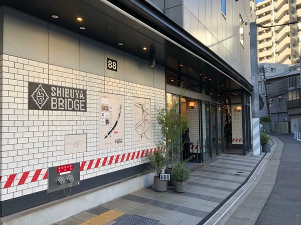 ロケーションは渋谷駅から徒歩7分程の約600mに渡り整備される渋谷川沿いの遊歩道の先に位置する保育所、店舗、ホテルからなる複合施設の中にあります。2013年に地下化される前の東急東横線、渋谷~代官山間をつないでいた高架線路跡地の再開発エリアが「渋谷ブリッジ」になります。