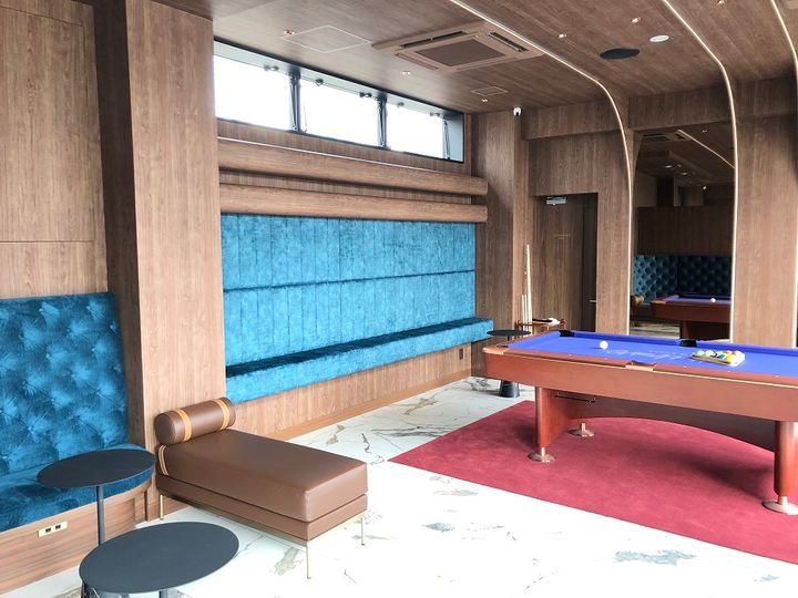 ビリヤードが設置された最上階7Fのラウンジは宿泊ゲストが24時間自由に使えるスペースです。