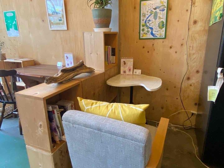 PQ'sに足を踏み入れると、ウッディーな空間に観葉植物や本がセンスよく配置されたオシャレな店内が広がっていました!