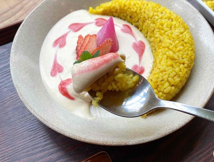 3. 【フジッコ】と入谷で人気の【Vegan Cafe PQ's】がコラボ!真っ白いカレーにいちごトッピング!?キュートな見た目と気になる味をレビュー