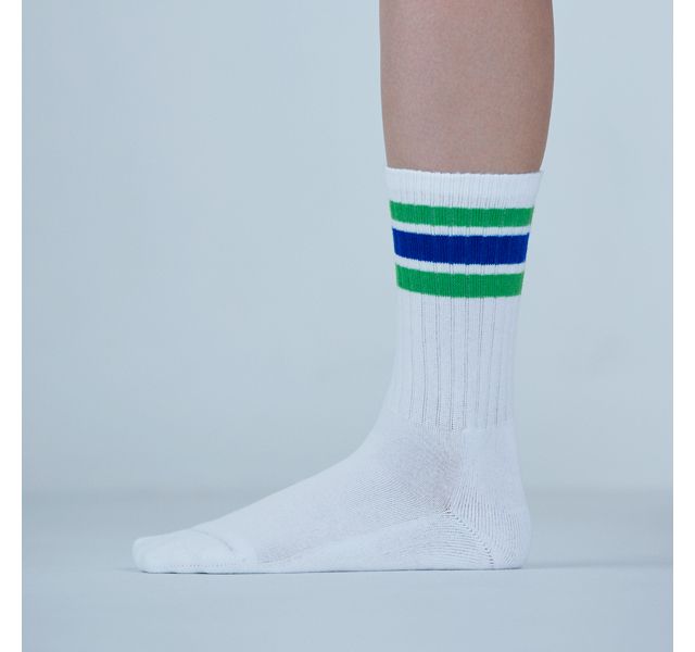 ファミリーマートのコーポレートカラーがデザインされたファミマソックスが、