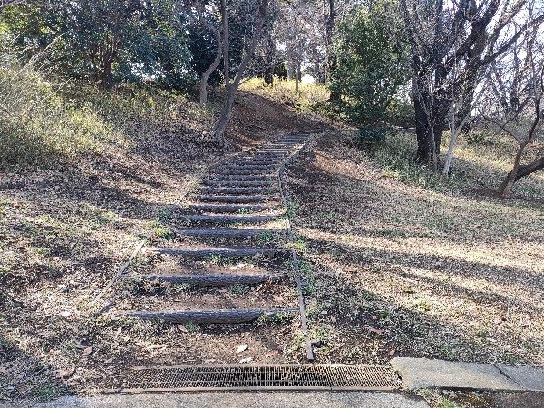 小高い丘の斜面には下の写真の様な歩道があり、散歩にも最適です。犬の散歩をしている光景も見られます。