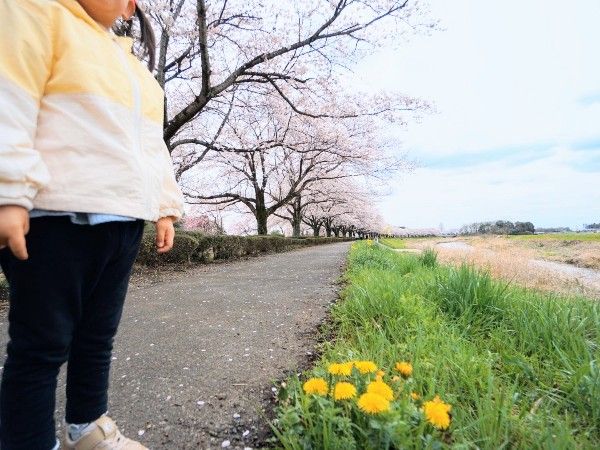 道の途中でタンポポ発見!桜が綺麗で思わず上を向いて歩いていましたが、子供目線ならではの楽しい発見もあるんですね♪