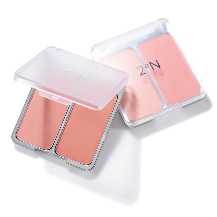 左の05はマット、右の07はツヤを演出するパール入り。右から:デュアルチーク 07、同 05 各¥1,870(共に2aN JAPAN)
