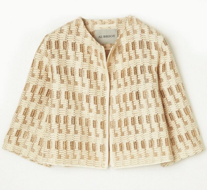 オブリオはアンタイトルのディレクターが提案する、新しい女性像を掲げるブランド。レディライクに今っぽさがふんだんに入ったアイテムが魅力。ラメを織り込んだクロシェ風ツイードの7分袖クルーネックジャケットは、ほんのり透け感があり軽やかに着られる。かっちりしすぎないボクシーなシルエットは、オン・オフ活躍する汎用性の高いデザイン。ジャケット6万9300円(オブリオ)