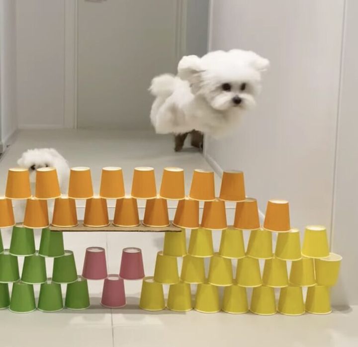 あのBGMに合わせて 犬さんたちのかわいい紙コップチャレンジ!