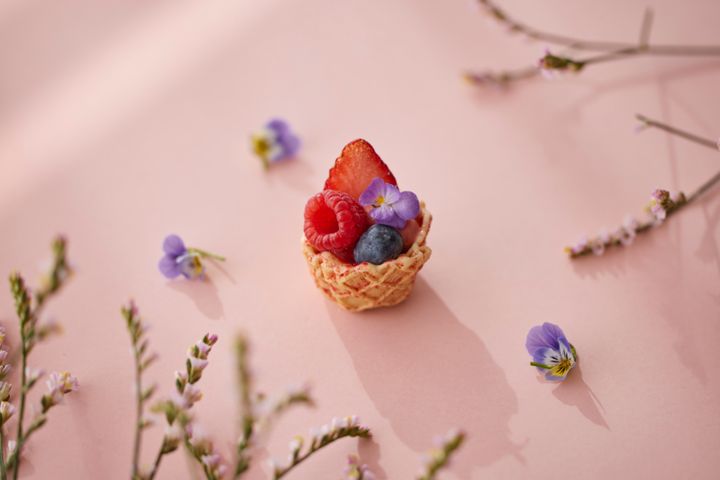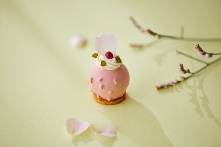 ピンク色のウェルカムドリンクからはじまり、スイーツの前にでてくるのが、開業以来わずか1年半の間にミシュラン2つ星を獲得した「SÉZANNE (セザン)」が手掛けるセイボリー。総料理長ダニエル・カルバート氏が、日本の旬の食材にフォーカスして作り上げた全5品が堪能できます。一口の中に折り重なる味や食感。親しみのある食材とは思えないほどまったく新しく味に出会えます。誰でも簡単に一口でつまめるセイボリーで、こんなにも重層的な味わいが広がるなんて衝撃的。子どものときに出会っていたら、私もシェフを目指したかもしれないと思いながらいただきました。誰かの人生を変えてしまうような、そんな味!