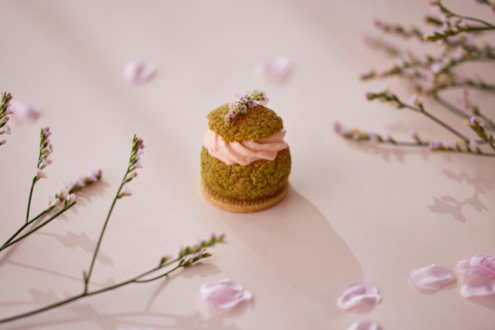 満を持してケーキスタンドにのって登場したスイーツたちは、日本をイメージした抹茶&桜のシュー、ハワイをイメージしたハイビスカス&ベリータルト、南フランスをイメージしたラベンダーチーズケーキ、中東をイメージしたローズパウンドケーキ、インドネシアのジャスミン&ライチマカロン。さらに焼きたてのマドレーヌとスコーン2種まで! 世界各国のお花から着想を得たという美しいスイーツたちが一斉にお目見えです。その繊細さに思わずうっとり。手に取るたびにそれぞれの国の情景が目に浮かぶようで、お皿の上で小さな旅をしている気分。