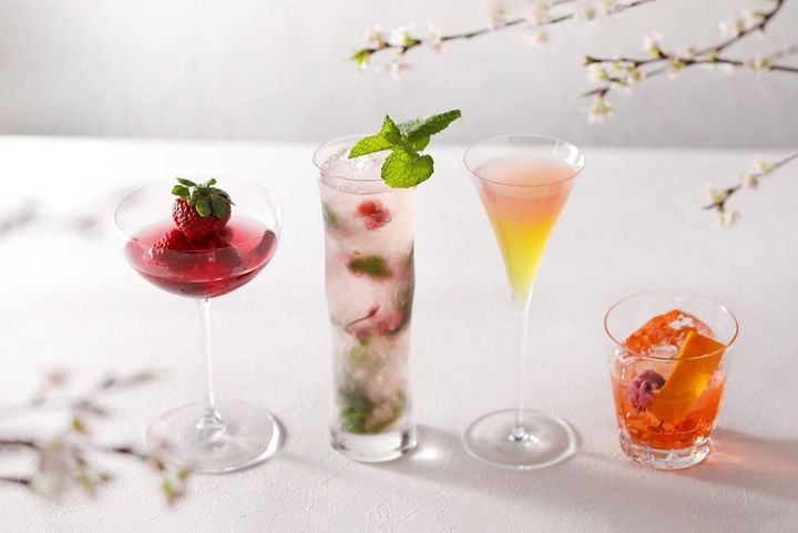 ザ・メイン ロビィ階の「バー カプリ」限定で桜リキュールやイチゴを使った4種のカクテル「SAKURA Cocktails Collection(サクラカクテルコレクション)」(各2,800円・サ別)も登場※4月30日まで(画像:株式会社ニュー・オータニリリース)