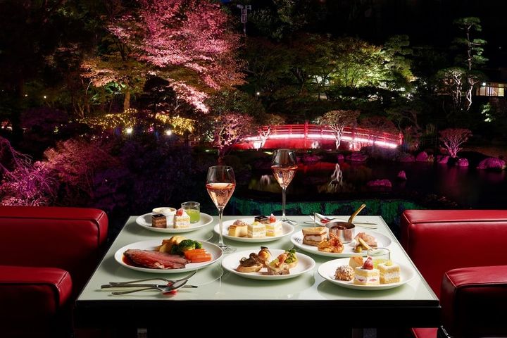 日本庭園に臨む「夜桜LOUNGE」のイメージ(画像:株式会社ニュー・オータニリリース)