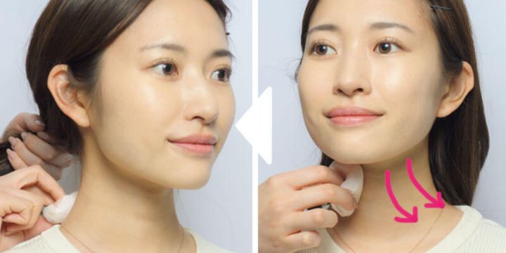 9.首の色が違うと不自然なので、首にも叩き込んで透明感を出す