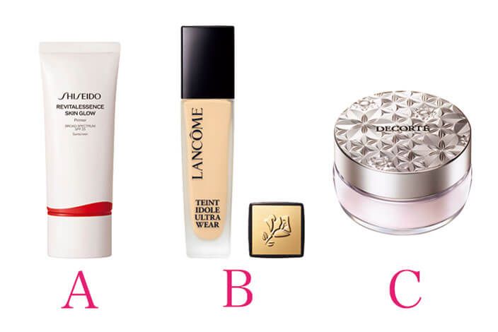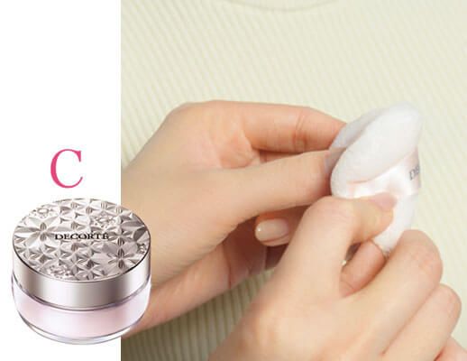 C.フォギーな肌に仕上げるパウダー。透明感を出しつつ毛穴をボカす。