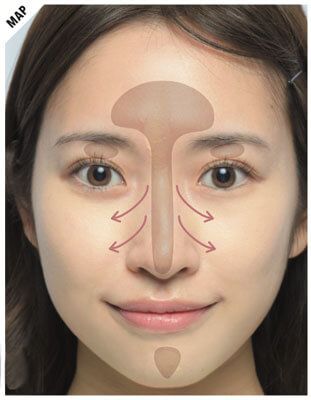 5.顔の中央にのせることで高さを出す