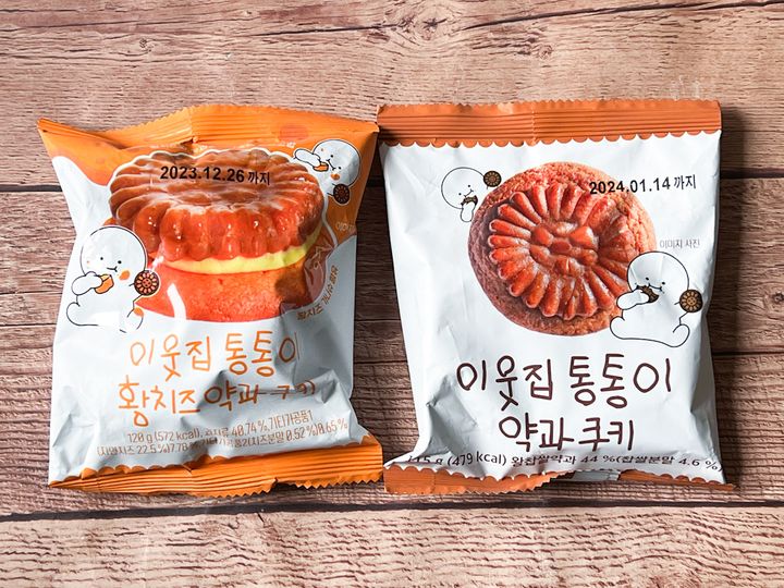 今回紹介するのは、韓国の有名コンビニ「CU」と狎鴎亭ロデオにある人気ベーカリーカフェ「이웃집 통통이(イウッチプトントンイ=お隣のぽっちゃりさん)」とのコラボ薬菓クッキー「オリジナル」と「黄チーズ」の2種類です。