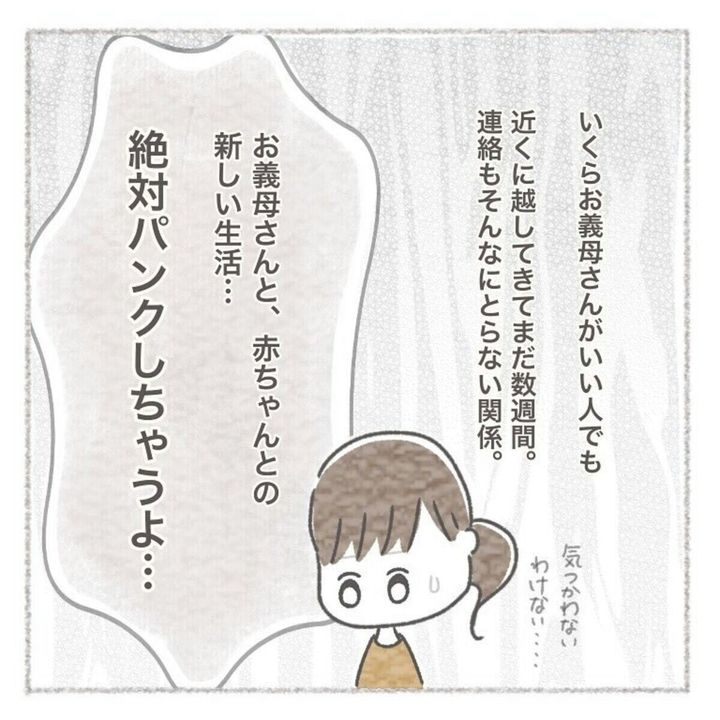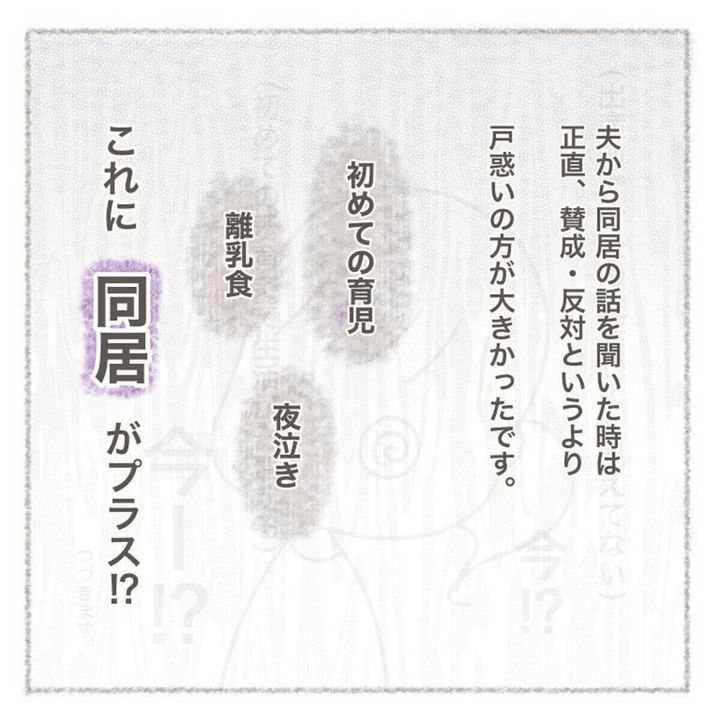 離乳食、夜泣きなど、初めての育児でこの先大変なことばかり。いくら義母がいい人とはいえ、他人と新しい生活を始めることには戸惑いしか感じられず、まずは夫と2人でしっかり話し合うことにしました。