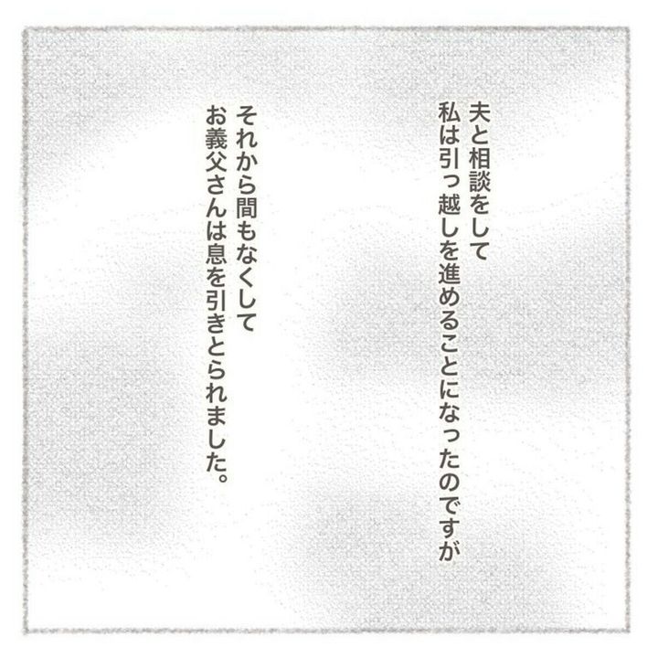 ある日、ペンコさん夫婦に転機が訪れ、「そろそろ引っ越しをしようか」という話に。その主な理由は、子どもを授かったことと義父の体調悪化によるもので、夫の実家の近くに住む準備を進めていました。しかし、その義父が急逝してしまったのです。