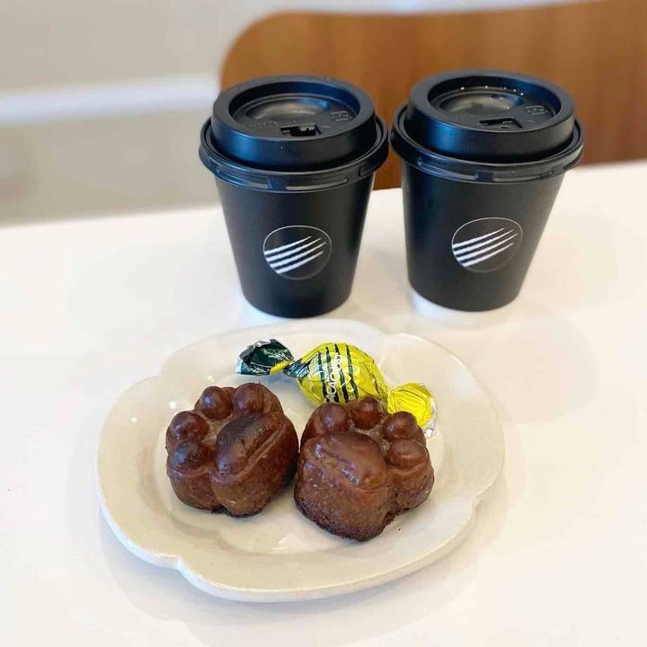 カヌレといえばあのスクっと縦長な見た目を想像する人もいるかもしれませんが、カカオキャットのカヌレはもちろん猫の肉球型。ふっくらした見た目がかわいすぎます♡