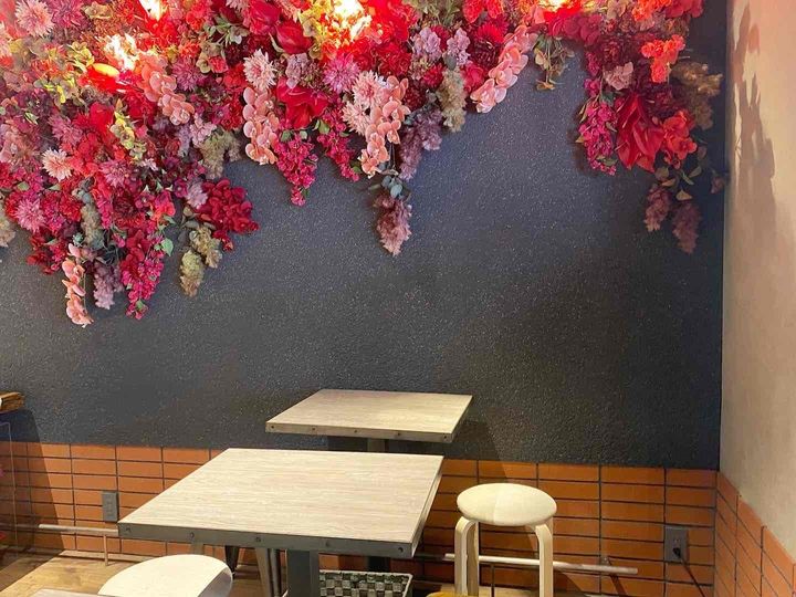 CACAOCAT & Chocolate Origin 白金台店のもう1つのスペースには「ちひろ菓子店」が入っています。ちひろ菓子店のスペースにテーブル席と通りを望むカウンター席が数席あり、カカオキャットが販売するコーヒーなどのドリンクやケーキなどのスイーツをイートインできます。コーヒーとケーキのお得なセットなどもありました!