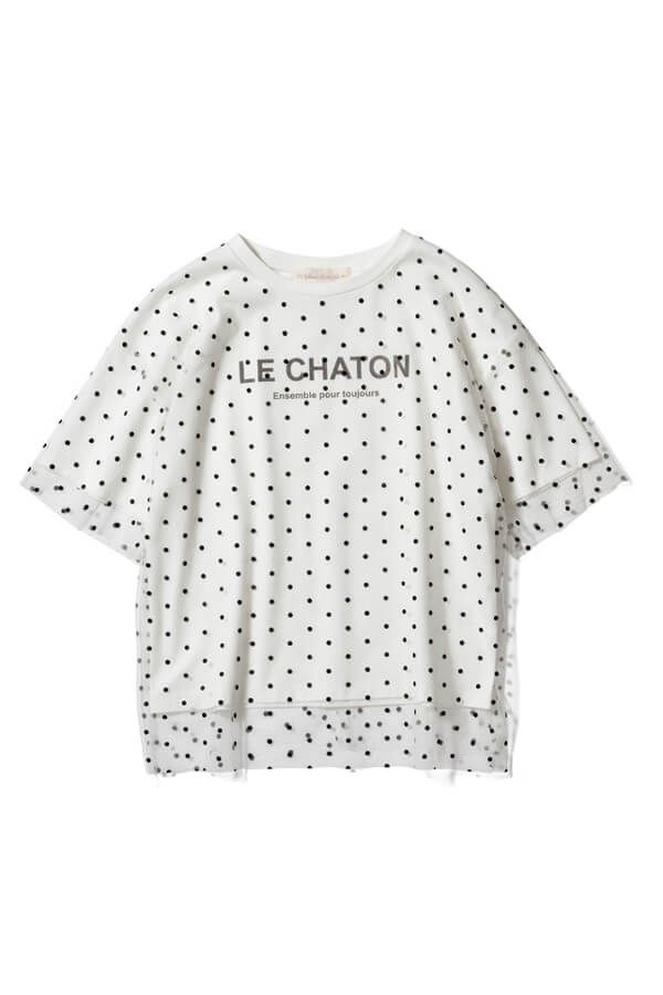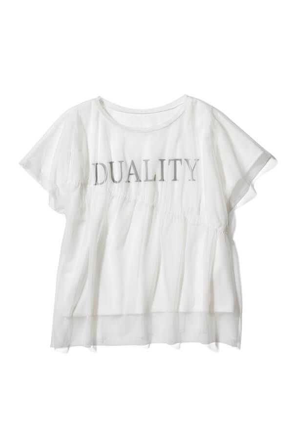 斜め切り替えが目を引くおかぶせチュールが、Tシャツのカジュアルさをほどよくセーブ。デニム合わせなどのワンツーコーデも、女っぽく仕上がります♡