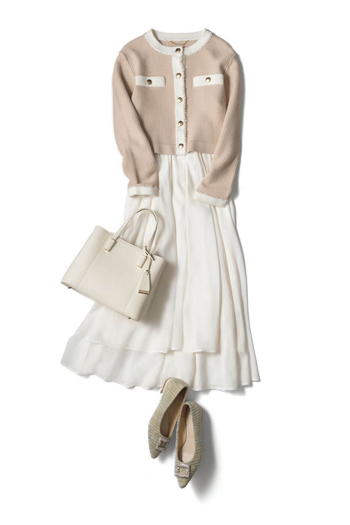 カーディガン¥17,600/CELFORD スカート¥13,200/Noëla バッグ¥20,350/ダイアナ(ダイアナ 銀座本店) パンプス¥7,500/オリエンタルトラフィック(ダブルエー)