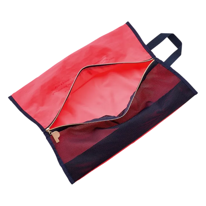 便利な持ち手つきで、予備の靴もこれに入れて、コンパクトにスーツケースにイン。