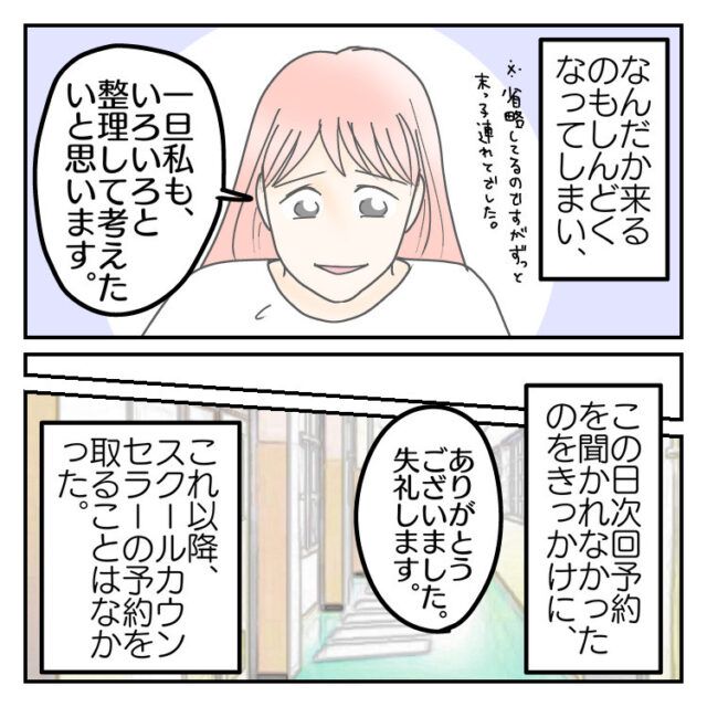 3. [58]そうなのかも、でも・・。カウンセラーの意見に心から納得できない自分がいる。校に行きたくない理由|ねこじまいもみの楽しくワンオペライフ