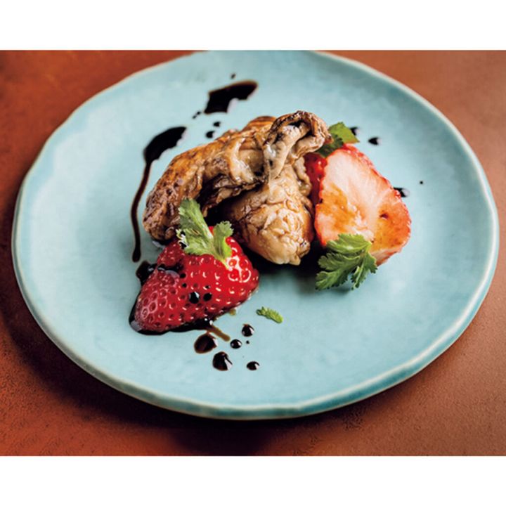 さっと揚げて旨みを閉じ込めてからマリネした牡蠣に、甘酸っぱいイチゴとバルサミコのソースを添えて。牡蠣とイチゴのエスカベッシュ1個¥500(写真は2個)
