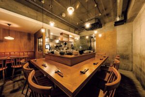 季節の和素材を取り入れた中華料理で人気が高い「エンジン」の2号店は、コの字カウンターと4人掛けテーブル1卓を配した居酒屋さん。実家の中華料理店を経て「エンジン」で腕を磨いた阿部孟シェフが手掛けるのは、餃子やエビチリ、天津飯といったお馴染みメニューのみならず、炙り〆鯖やポテトサラダ、ぶり大根などちょっと意外な一品も。それらもアイデアと技を駆使して、中華の味わいを楽しめるように仕上げています。紹興酒はもちろん、ワインや日本酒も揃えた充実のラインナップで、深夜まで迎えてくれるのも嬉しい1軒です。