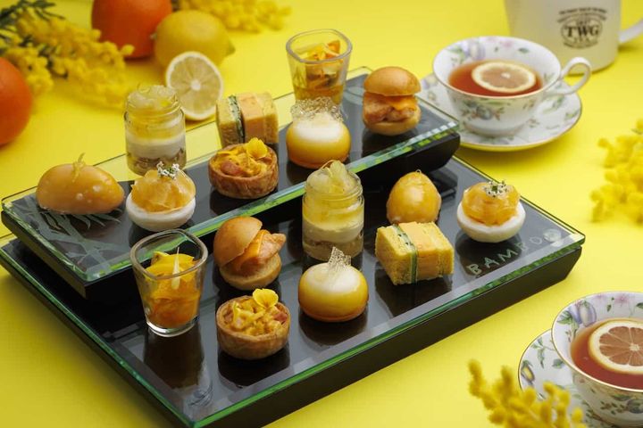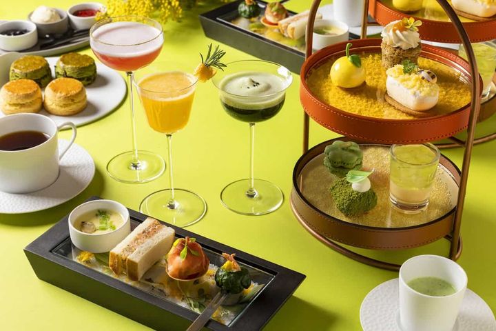 期間中、ホテル内のレストランやバーでは、ミモザをモチーフにした料理やドリンクを提供するほか、ホテルのロビーやフロントなどではハッピーイエローの装飾が施されます。柑橘系フルーツを使用した「シトラスイエローアフタヌーンティー」は、春らしく鮮やかな色のアフタヌーンティーです。