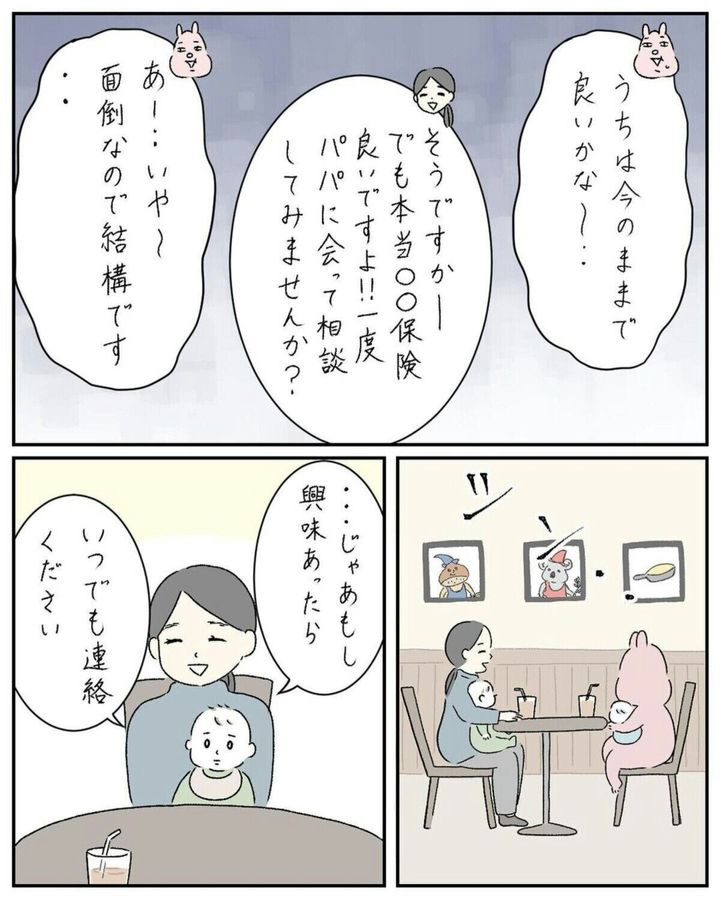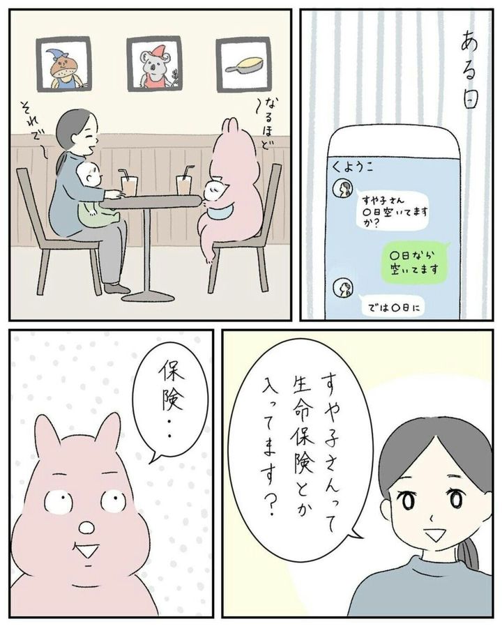 結婚式後も連絡をくれるよう子さんでしたが、ある日お茶をしていると、生命保険の話を切り出されます。夫が保険関係の仕事をしているとのことで、すや子さんは「保険の勧誘だ」と悟ったのです。定期的に連絡をとっていましたが、その日を境によう子さんに返信するのを止めたのでした。