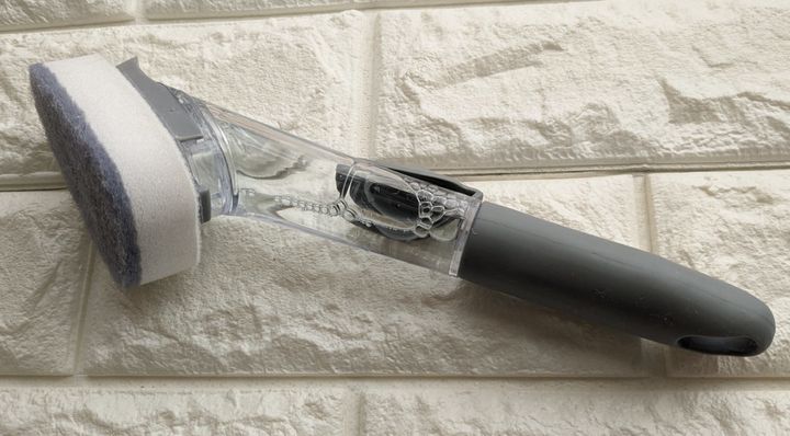でも実はこのようなブラシにすでに20年程前、アメリカでであっていました。柄の部分に洗剤が入れられて、そのまま皿が洗えるというまさに画期的な商品。その便利さに感動したのですが、すっかり購入してくるのを忘れて日本で買えず時が経ち、そのうちに存在すら忘れていました。