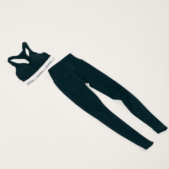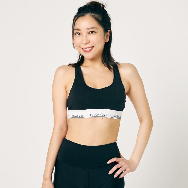 「Calvin Klein」とアメリカ生まれのヨガウェアブランド「alo」のコラボウェア。生徒さんにわかりやすくレクチャーするため、体のラインやお腹がしっかり見えるデザインを選ぶようにしています。
