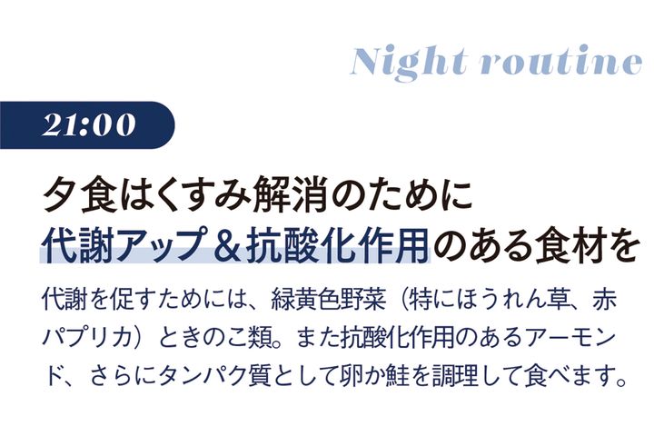夕食はくすみ解消のために代謝アップ&抗酸化作用のある食材を
