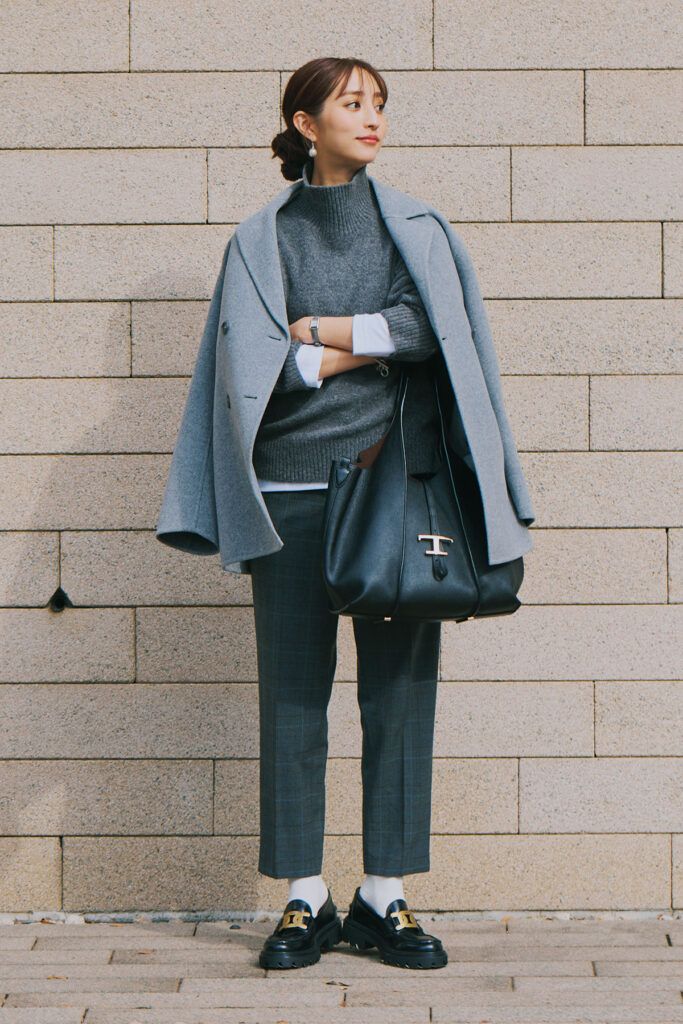 【グレーのワントーンを違和感なく繋ぐ同色ソックスがカギ】