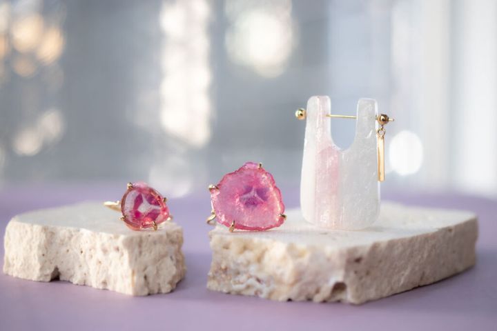 MONAKA×Chaos 左から:フラットリング小 ¥132,000、フラットリング大 ¥154,000、ロックピアス ¥53,900(GINZA SIX限定)