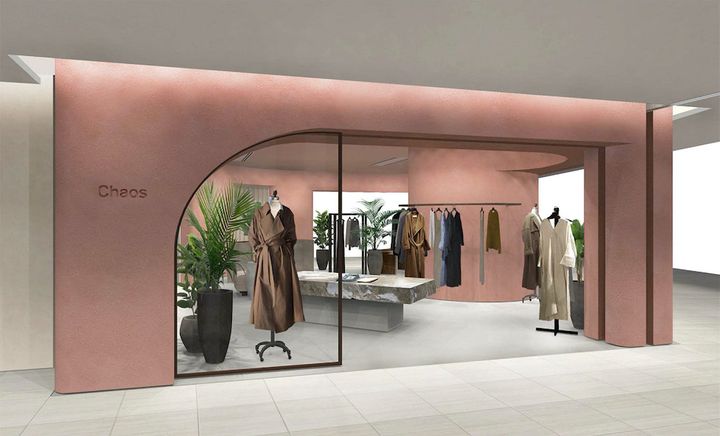 「Chaos GINZA SIX」の店内は“Smooth Molding”をテーマにした、なめらかな構築とピンクがかった素材の質感がポイント。計算された構築のなかで、心地よくショッピングを楽しめます。