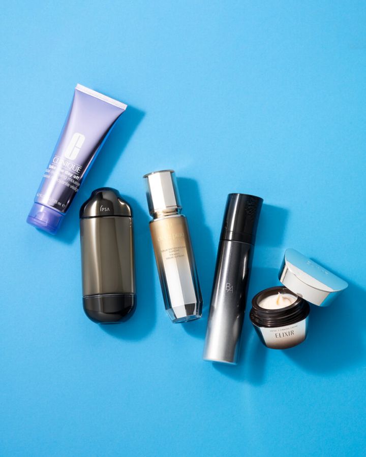 左上から、贅沢でシルキーなムースの泡が肌に摩擦を与えることなく毛穴の奥の汚れまで優しく浮き上がらせて、洗い上げてくれる洗顔料。ストレートタイプの持ち前のぷりっとした肌も“擦る”ことで下垂の原因に。洗顔も“優しく行う”に越したことはありません。テイク ザ デイ オフ フェーシャル ムース 125ml¥4,950(クリニーク)ハリ不足や乾燥などの肌悩みにアプローチする化粧水。通称“復活の木”と呼ばれる砂漠植物から抽出したエキスとアミノ酸複合成分AMINO5INを配合し、透明感とハリ感に満ちた艶めく肌を目指します。エッセンスローション アルティメイト150ml ¥9,900(イプサ) 押し返すような弾力と潤いに満ちた肌に整える美容液。肌表面を持ち上げ、支えている立毛筋に効果的にアプローチするブランド独自の手技と合わせてつけることで、引き締まった美しい輪郭に。クレ・ド・ポー ボーテ セラムラフェルミサン S n 40g¥36,300(クレ・ド・ポー ボーテ)美容液とひとつになった引き締め泡乳液。2種のポリマーの組み合わせと2種のガスで作られる、なめらかで心地よい泡乳液が顔の上でほぐれ、引き締めヴェールに変化します。もたつきが気にならない、キュッと上向きのポジティブな肌に。B.A ミルク フォーム 84g¥13,200(ポーラ) 頬やフェイスラインのもたつき、ハリや弾力のなさなど、曖昧になった部分に全方位で働きかけるファーミングクリーム。潤いとハリで満たす独自成分と肌をグッと引き上げるブランド独自の手技の掛け合わせで使うたびに上向きの肌に。エリクシール トータルV ファーミングクリーム 50g¥11,000(エリクシール)