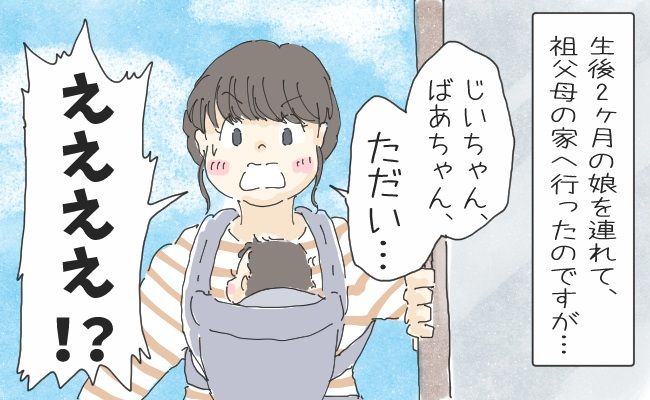 産後2カ月、初めての赤ちゃんを抱いて、私の祖父母が住む田舎へ出かけました。当時80歳代だった祖父母は、ひ孫に会える日を待ちに待っていました。そんな祖父母の喜ぶ顔を見るのが楽しみでした。そして、祖父母の家に到着すると、想像もしていなかった展開に……!?