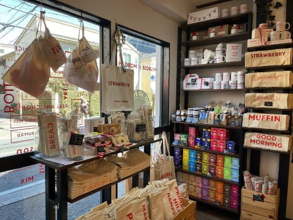 フードの他にも魅力的なグッズがあります。ロゴがかわいいカップやトート、紅茶やクッキーなどもあり、ギフトにも。
