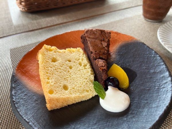 本日のチーズケーキ、ガトーショコラ、バニラアイスからお選びできます。ガトーショコラを頼みました。