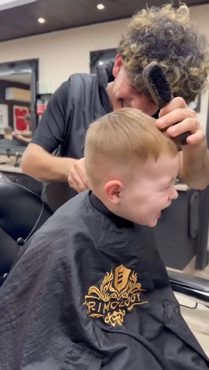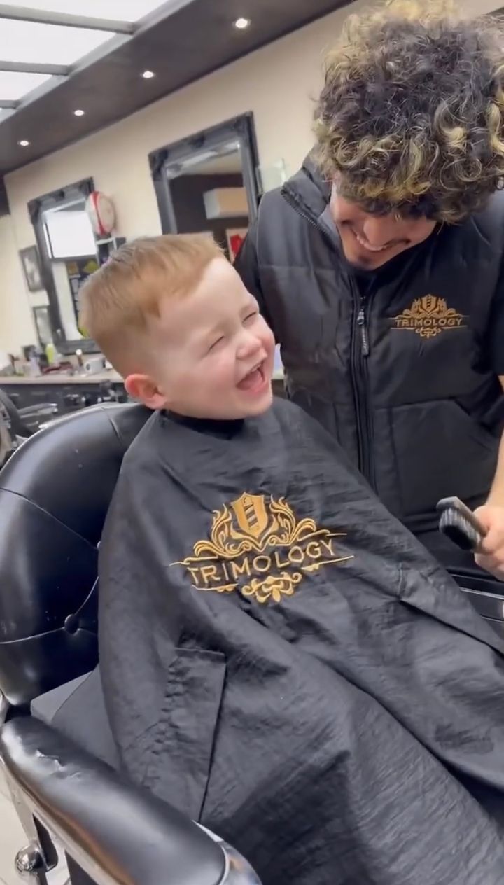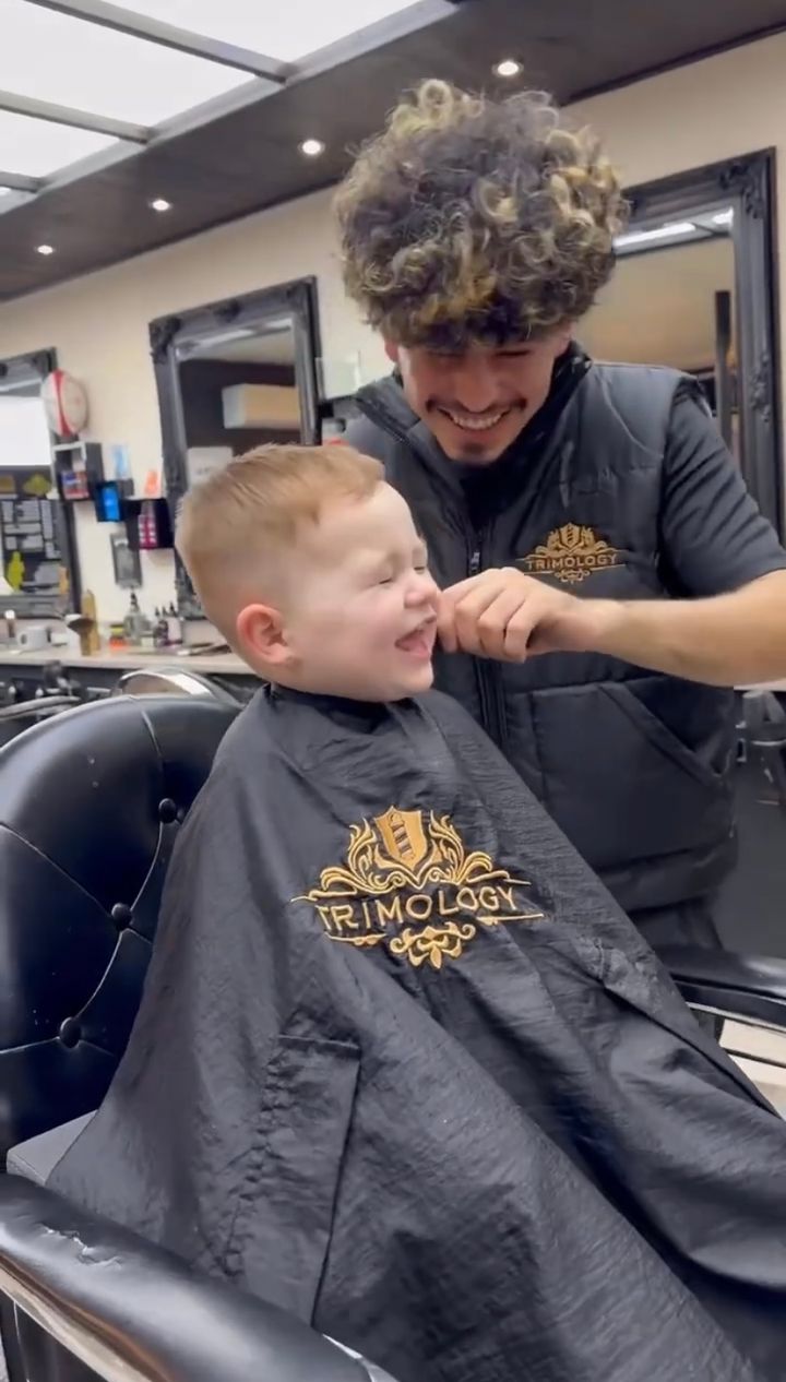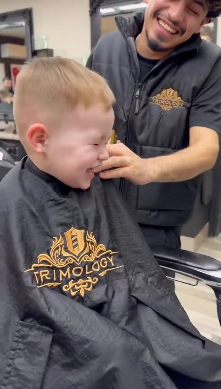 3. バリカンがくすぐったい!笑っちゃう男の子につられて理容師さんまで笑いが止まらなくなっちゃった!!【海外・動画】