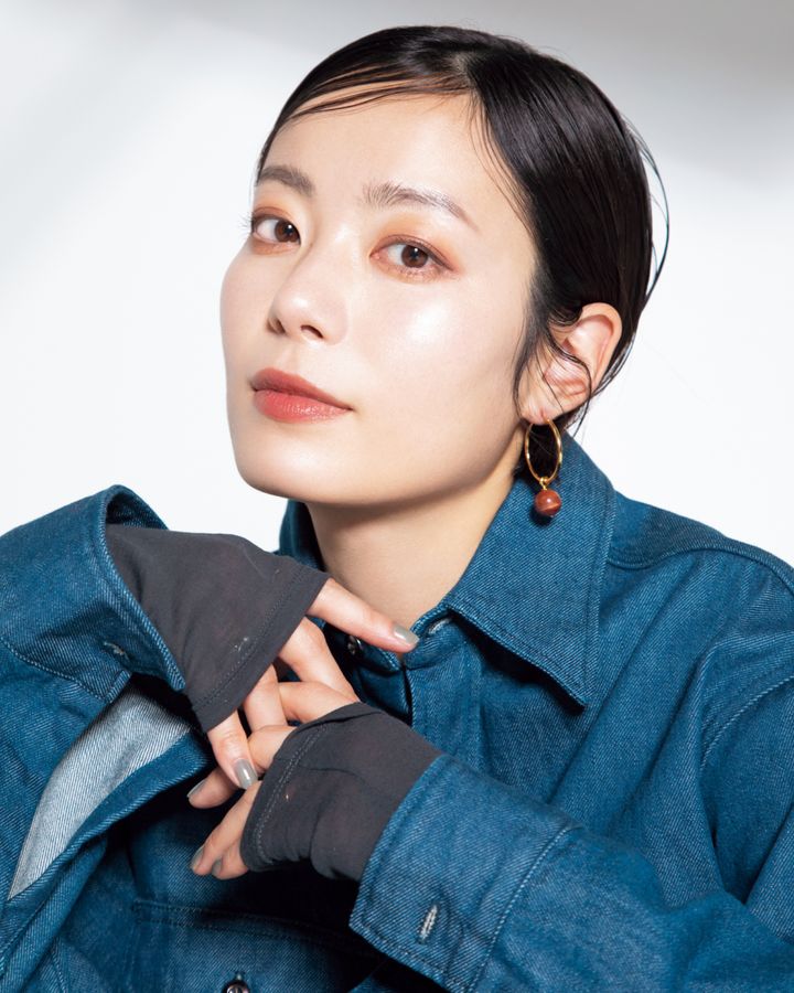 デニムシャツ ¥28,000(ウォードブルー × デミルクス ビームス)、ピアス¥11,000(デミルクス ビームス/デミルクス ビームス 新宿)